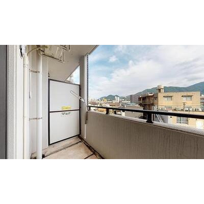 - ベランダの向きは南東です。正面は低層の戸建てが広がる住宅地です。その先には足立山の壮観な景色が目に入ります。四季折々の景色が楽しめますよ。