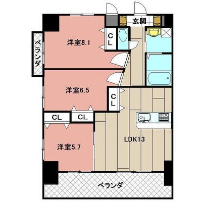 | 向き | 南 | 間取り内訳 | LDK13 / 洋8.1 / 洋6.5 / 洋5.7 | 建物構造 | 鉄筋コンクリート造 |