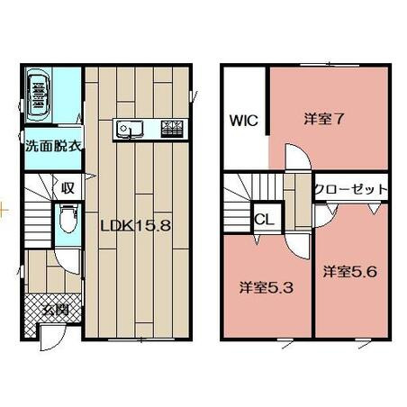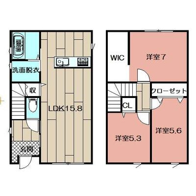 | 向き | 南 | 間取り内訳 | 洋5.6 / 洋5.3 / 洋7 / LDK15.8 | 建物構造 | 木造 |